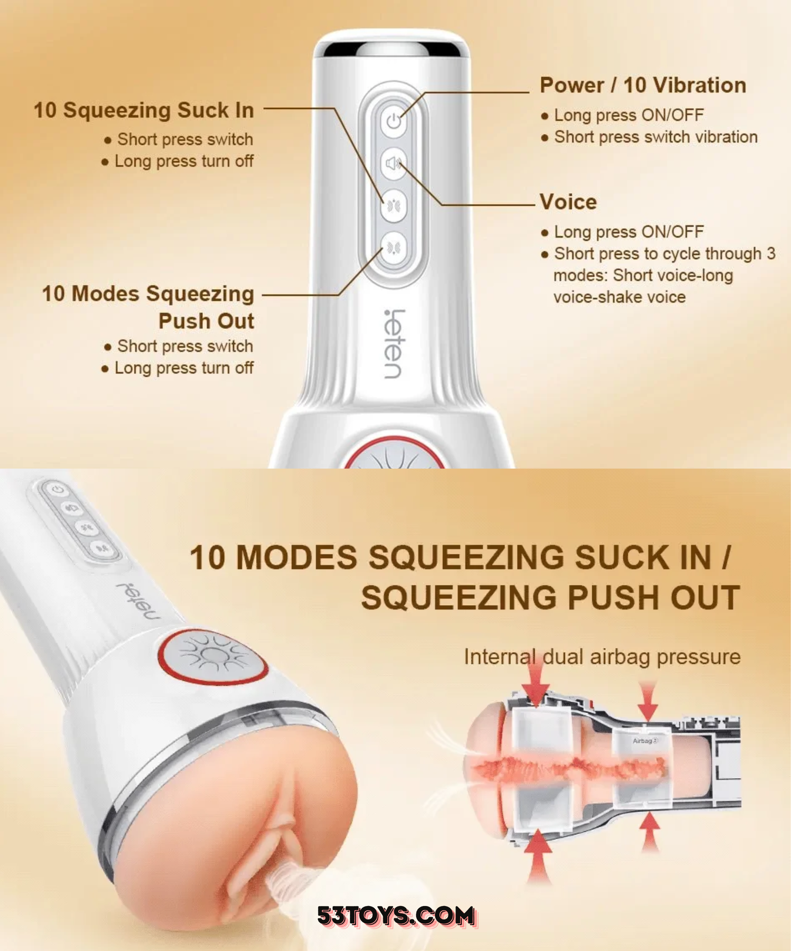 - Chức năng: bú mút và 10 tần số rung, có âm thanh rên rỉ cực kỳ kích thích