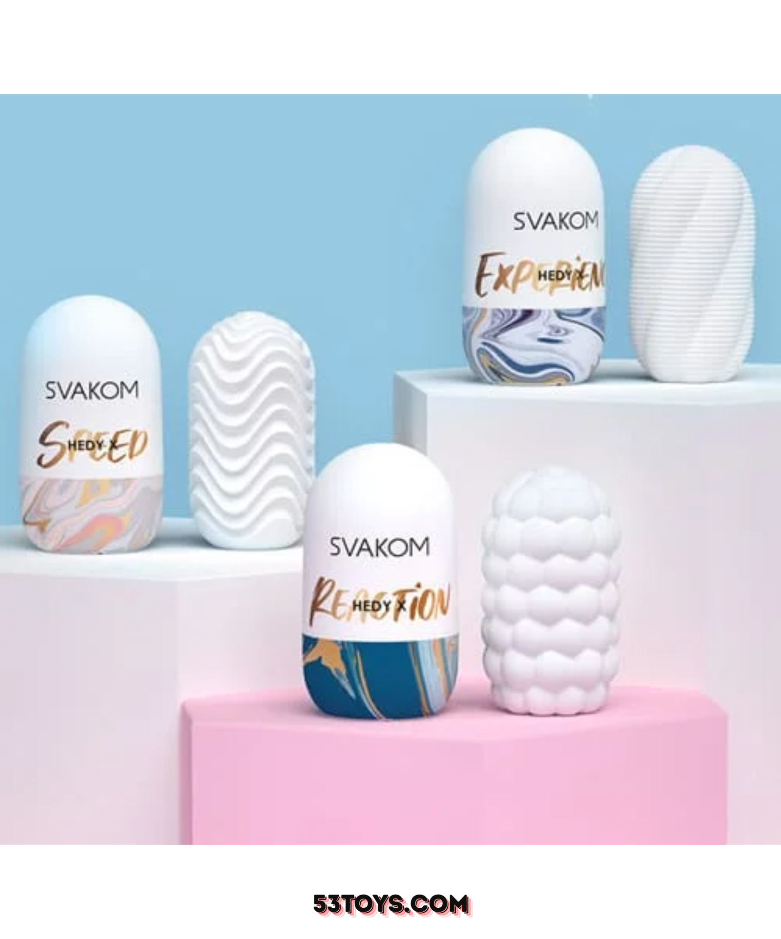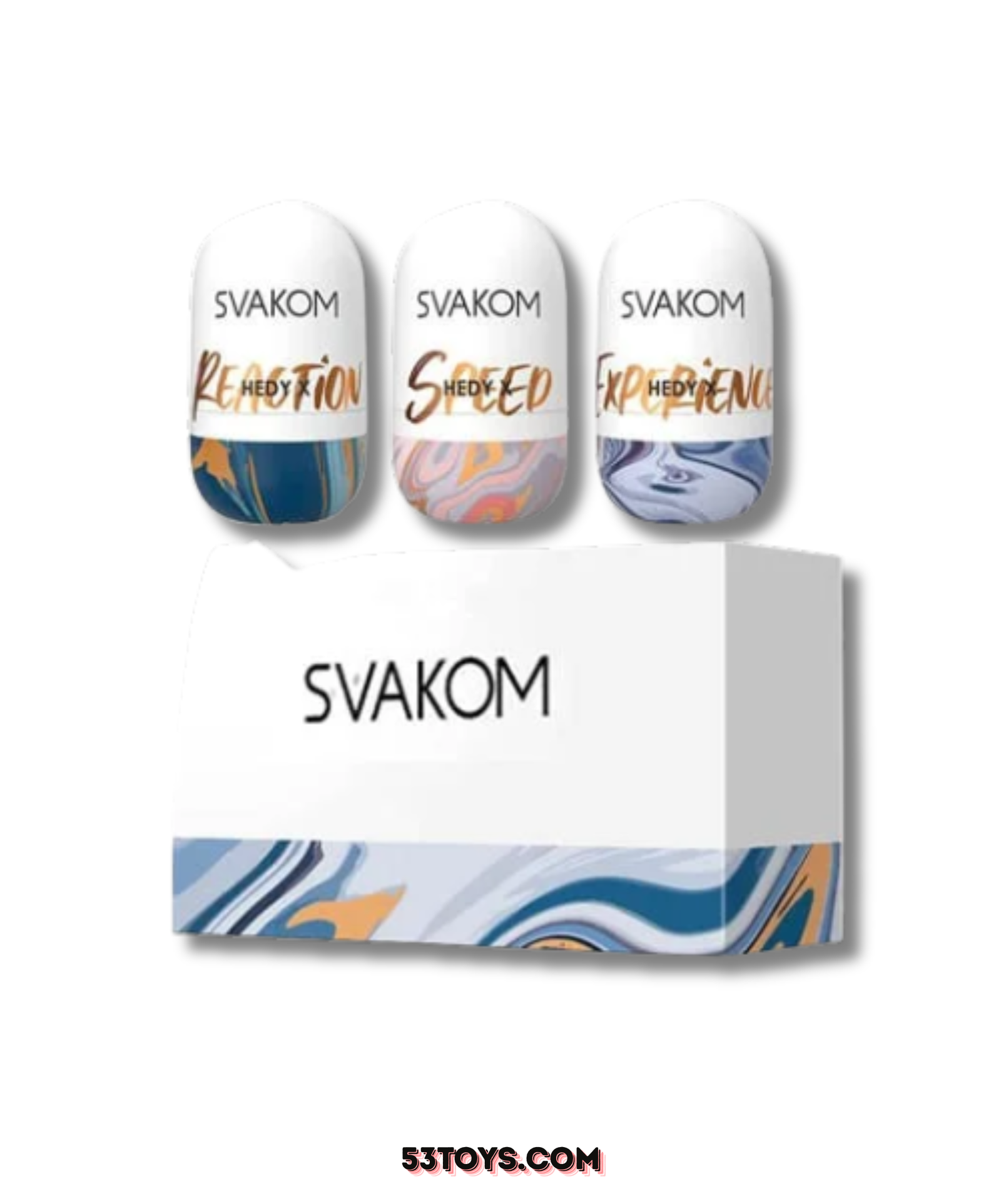 • Trứng thủ dâm svakom nhiều kiểu dáng với 3 thiết kế độc đáo là ba tone màu sắc khác nhau là: Hedy X hồng, Hedy X xanh đậm và Hedy X xanh nhạt, 3 tone này có 3 phần lõi ấn tượng.